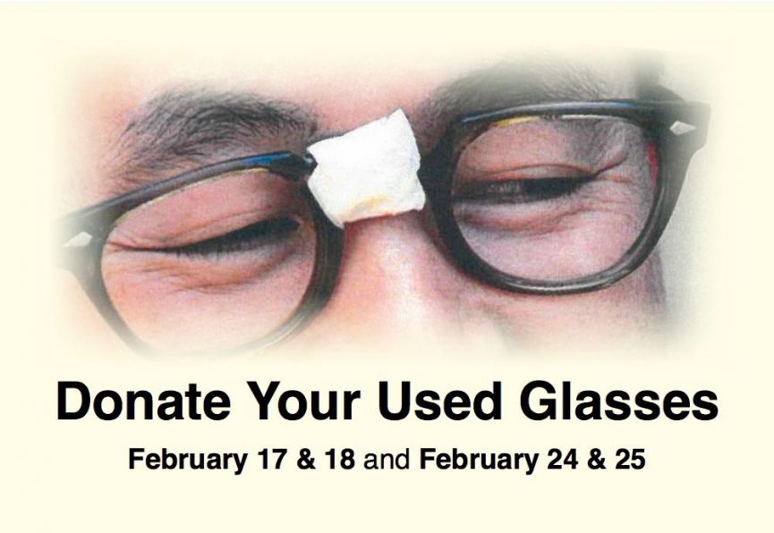 On February 17 & 18 and February 24 & 25, we invite you to bring your used eyeglasses to the Saturday 4:30 p.m., Sunday 9:00 a.m. or 11:00 a.m. liturgy.